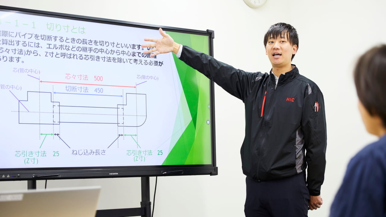 理解HICアカデミー独自の学習プログラムに基づき、授業形式で配管やボイラーの知識や資格を勉強し業界の基礎を学びます。