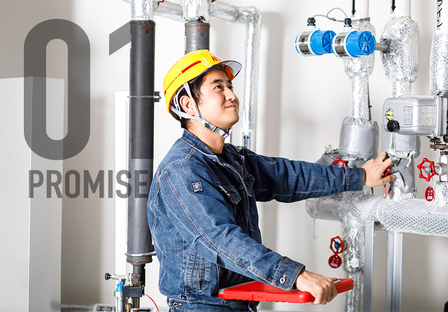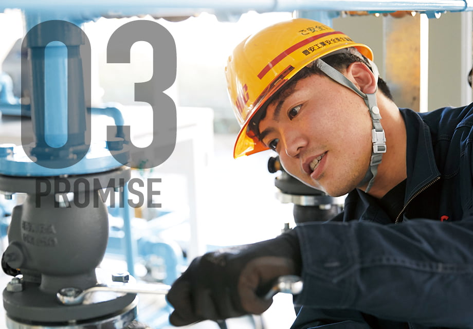 重油、ガソリン、切削油等、工場では様々な油が使用されており、現在では土壌汚染や河川流出等が問題視される中、油配管の漏れによる災害が大変重要視されています。自社ではサービスタンクから機器接続までの配管をトータル的に施工・管理しています。