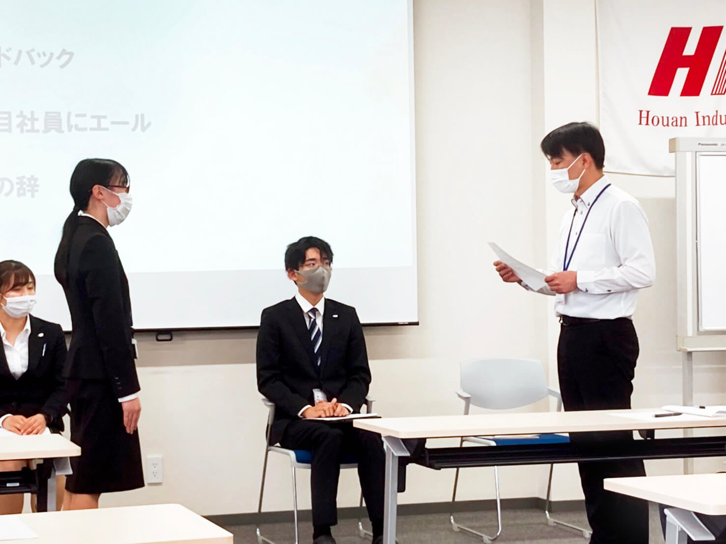 成果発表会が無事に終わった後は、フィードバックと教育担当の先輩社員からのエール!