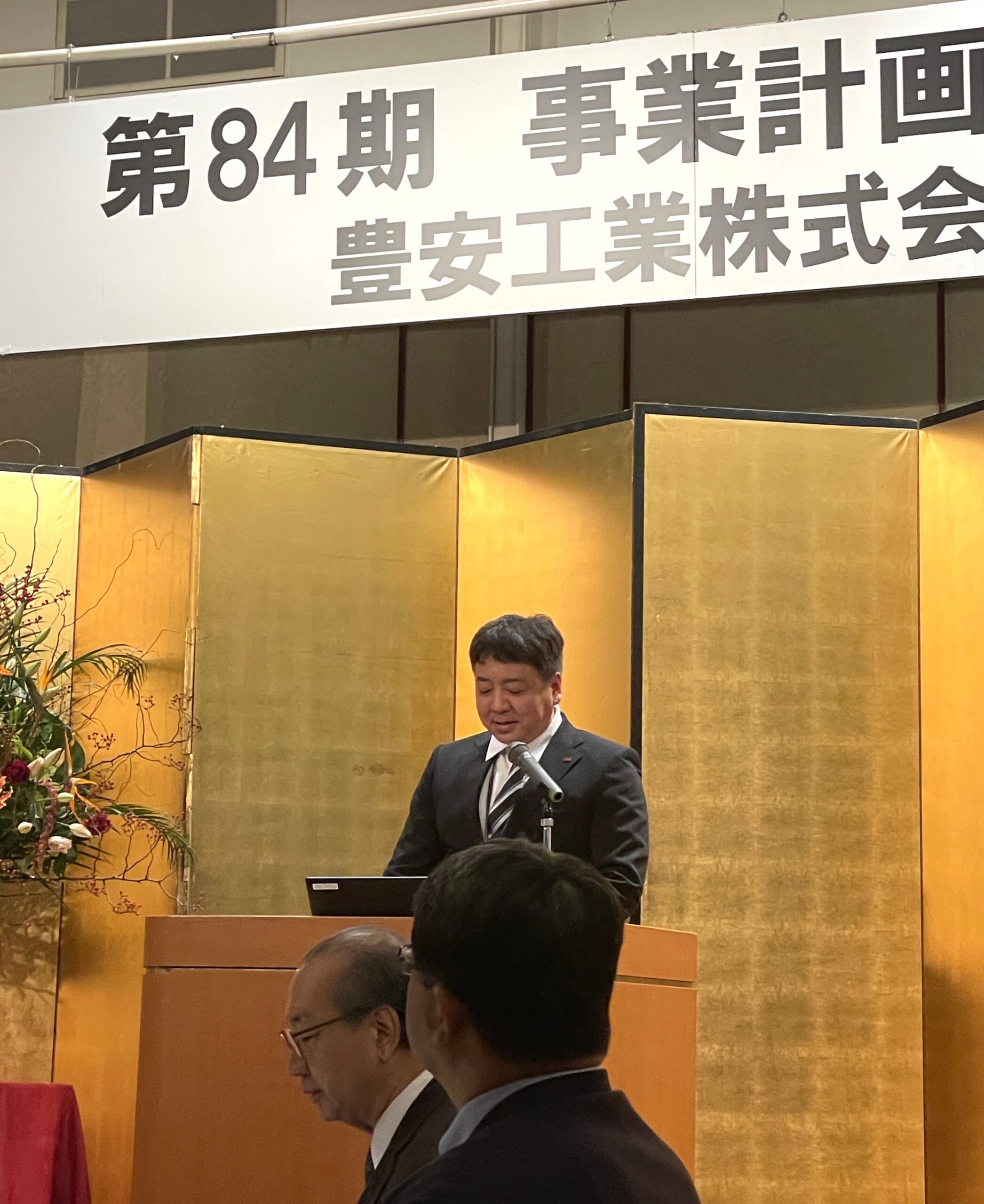 社長による事業計画の発表、そして各部門の指針・目標はそれぞれの部長から伝えられます。