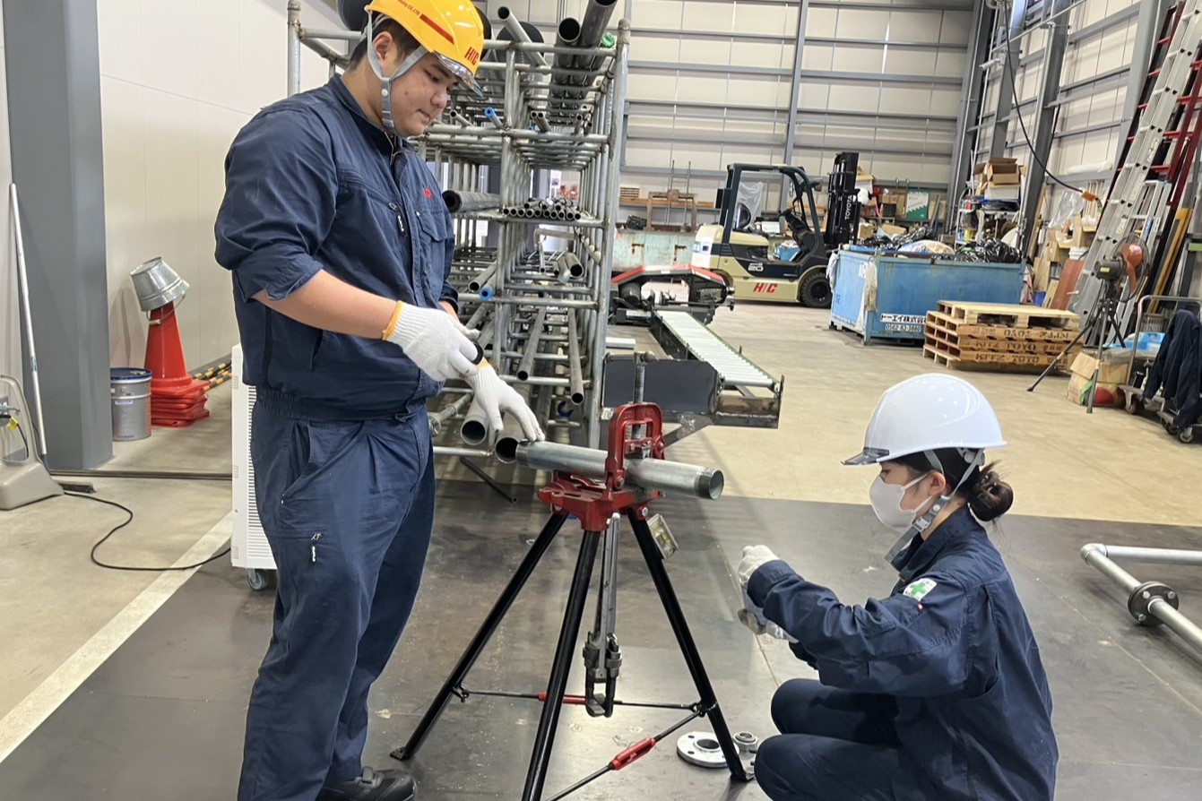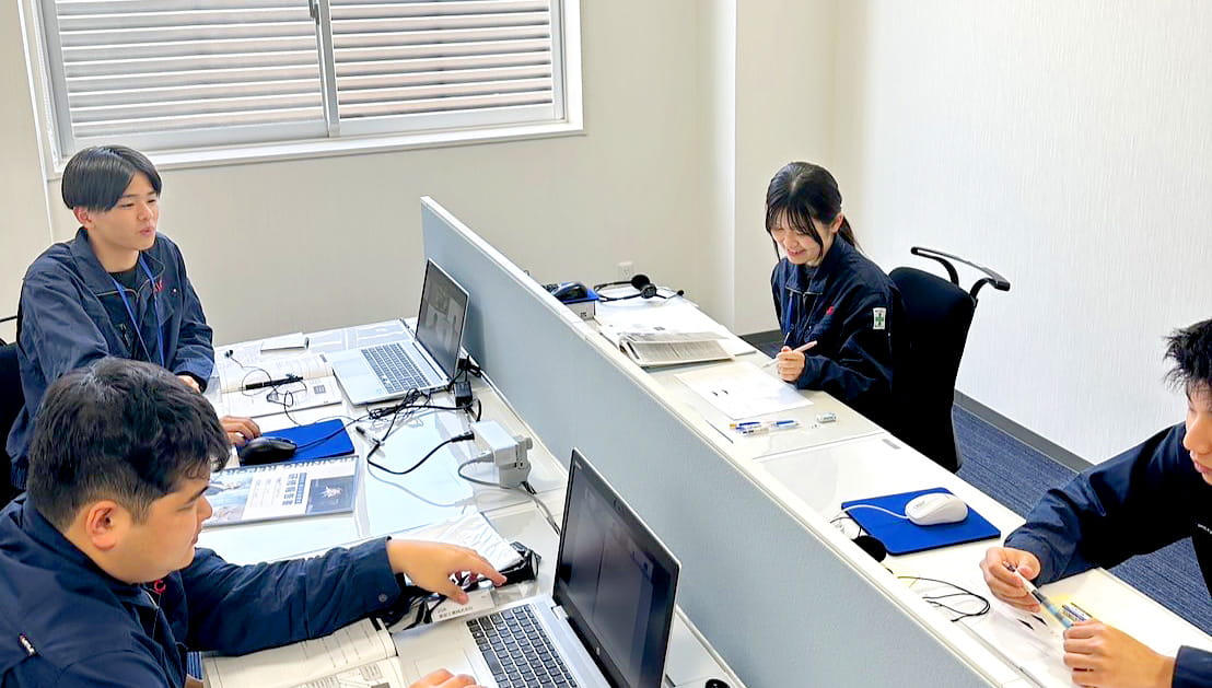この2つは、豊安工業ならではだと思います。部署や年次を越えていろいろな方と話せるので、「困ったときに相談できる人」が自然と増えていきます。頼れる人が多い温かい雰囲気は、働くうえでモチベ―ションになります!
